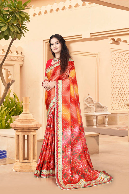 AJRAK PRINTED PURE SATIN RICH PALLU SAREE
