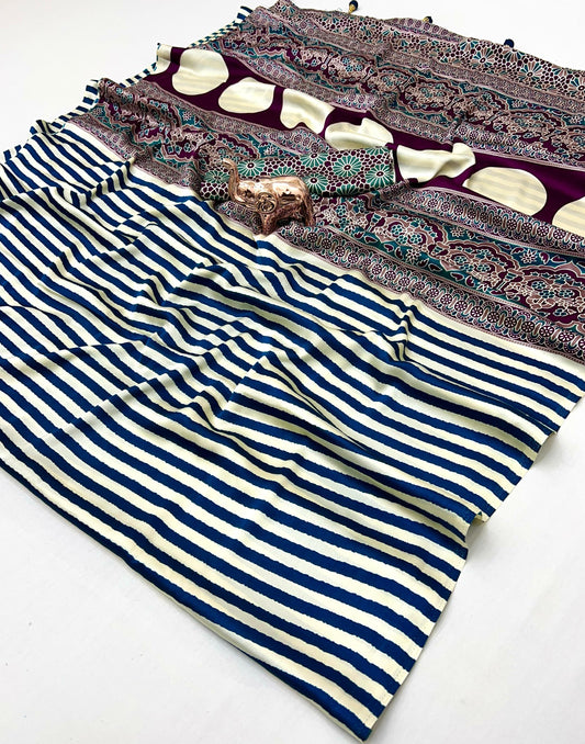 AJRAK PRINTED PURE CRAP SATIN SAREE