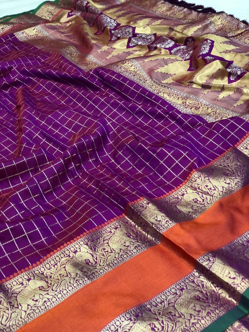 Elevate your ethnic wardrobe with this stunning purple sari, beautifully adorned with an elegant orange and black border. Crafted from high-quality fabric, this sari drapes gracefully, offering both comfort and style for any occasion. The vibrant colors and intricate design make it a perfect choice for festive celebrations, weddings, or formal gatherings. Embrace tradition with a modern twist and make a statement that reflects your unique sense of fashion.