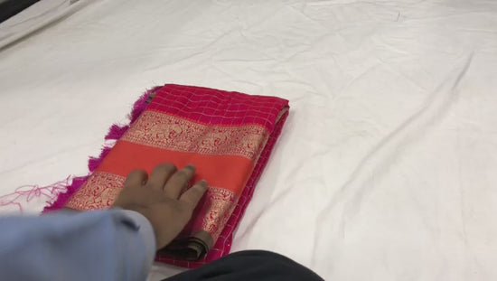 Fabrice PURE Jacquard fabrics with Sona Chandi pure zari work with a bouquet of vibrant 2 zari and pure WEAVE. the crisp and sheer SOFT saree fabric is woven with glistening zari jharokha, making it a perfect pick for designing a wedding and festive ensembles collection