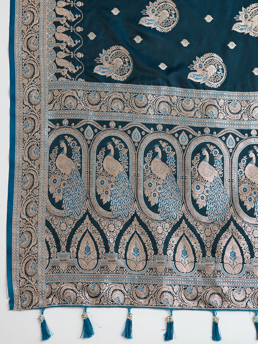 KAVYA BLUE SATIN SILK ZARI WOVEN SAREE