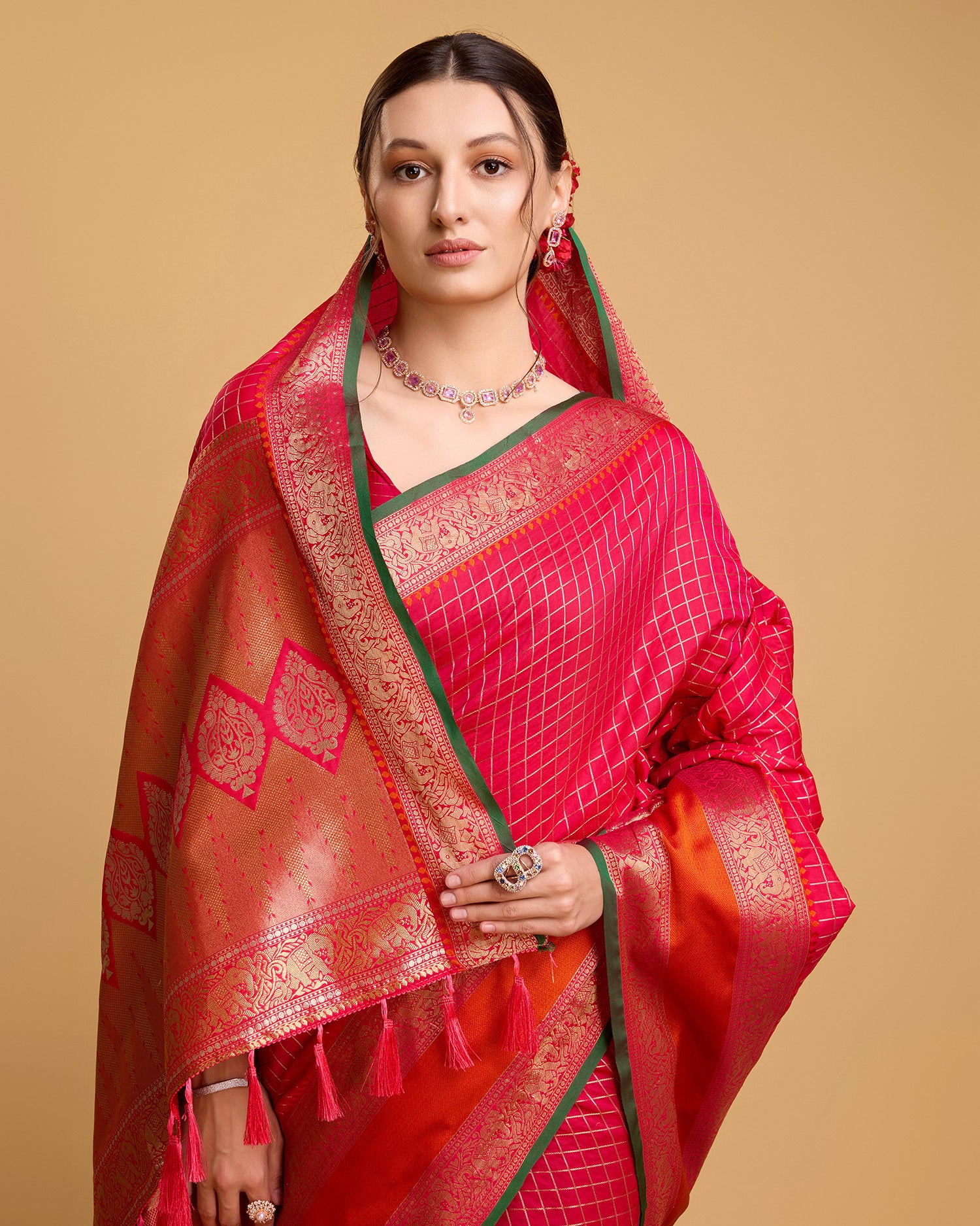 KAVYA WOVEN, CHECKERED KANJIVARAM PURE SILK SAREE