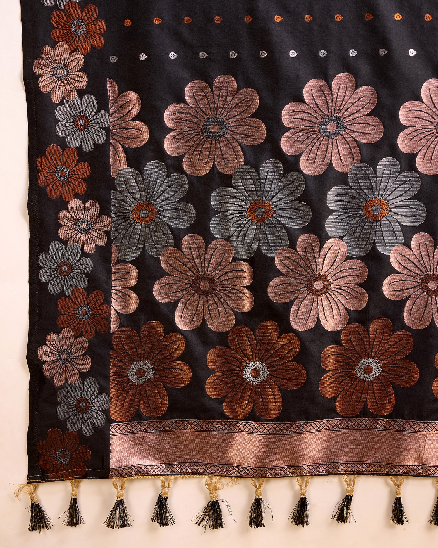 KHUSHI GRIVA DESIGNER FLORAL PRINT BANARSI PURE SILK SAREE