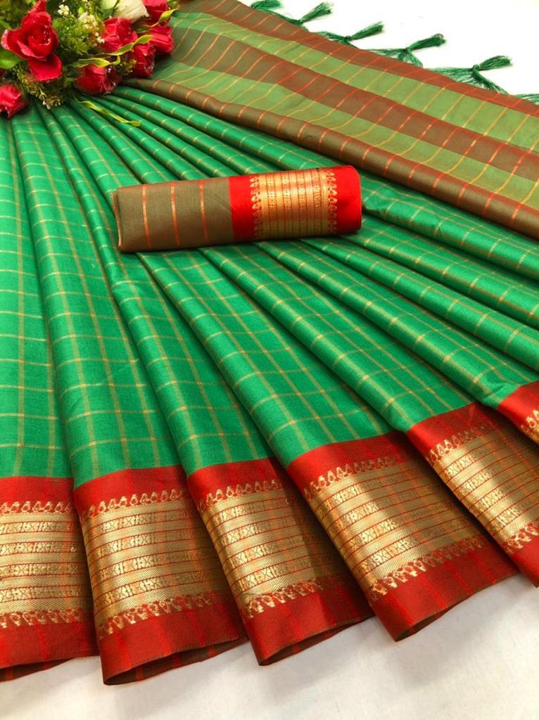 PRODUCT NAME :- PANDADI SAREE WOMEN'S COTTON SILK CHECKERED SAREE WITH BLOUSE PIECE Looking For This Celebrities Designer Saree