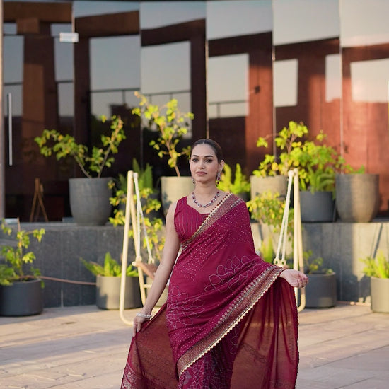 Elevate your ethnic wardrobe with this exquisite maroon coloured printed silk saree, a perfect blend of tradition and elegance. Crafted from luxurious silk, it drapes beautifully, enhancing your silhouette while providing comfort throughout the day. The intricate prints add a touch of sophistication, making it ideal for festive occasions or formal gatherings. Pair it with statement jewellery and heels to create a stunning ensemble that will leave a lasting impression. Embrace the allure of this saree and make it a timeless addition to your collection.