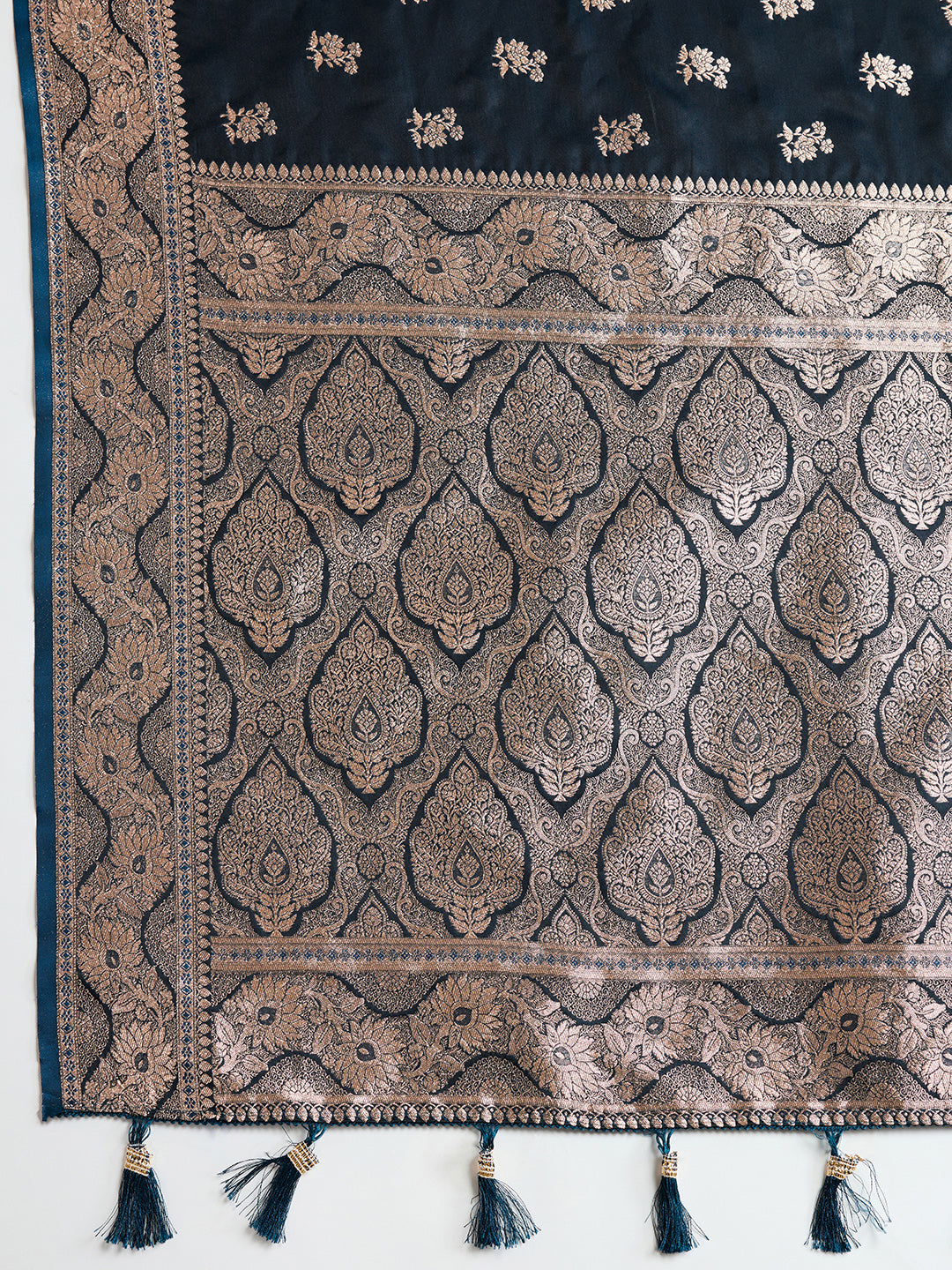 SMRITI TEAL PURE SILK SAREE FEATURING TRADITIONAL BANARSI ZARI WEAVING PATTERNS